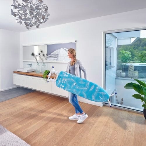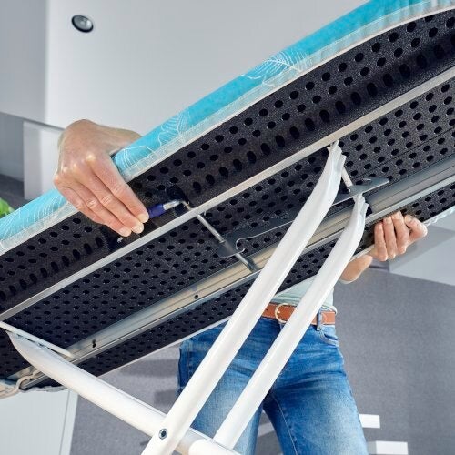 - Seguro de transporte para transportar la tabla de planchar con facilidad y guardarla ahorrando espacio